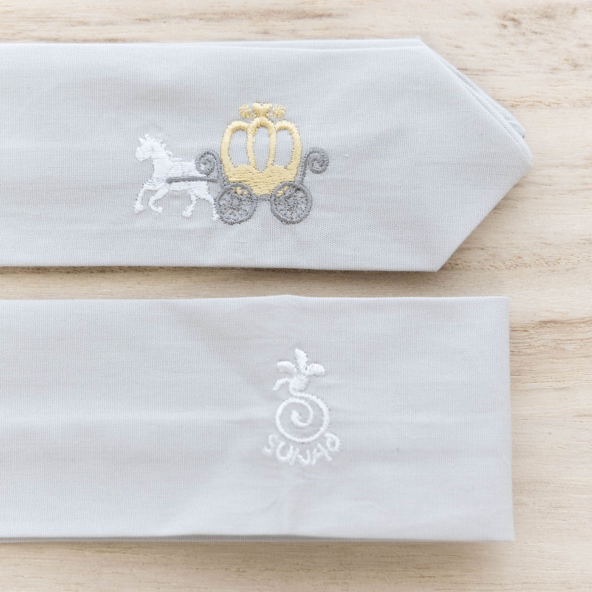 刺繍のモチーフはかぼちゃの馬車。