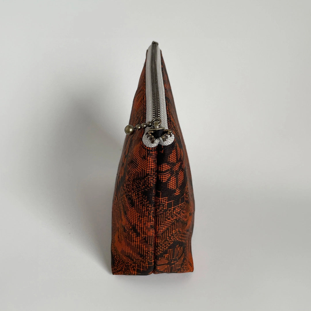 小物 オレンジ系 口金 アンティークゴールド 裏地 ブラック - サイズ